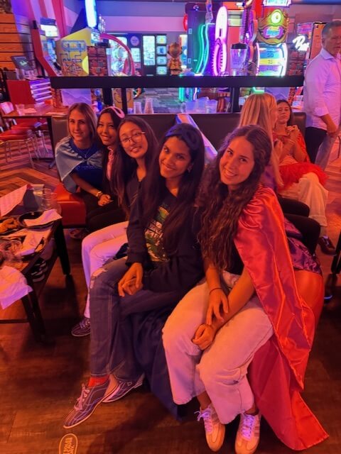Florida Girls Giving Back Class 1 and Junior Board Members making “cheer signs” for Miss Arc Broward Pageant.